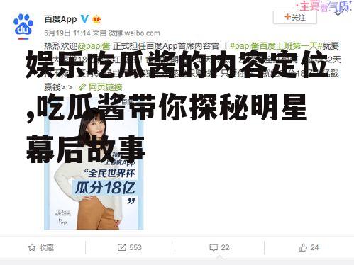 娱乐吃瓜酱的内容定位,既满足了人们对娱乐的需求,又传递了正能量。在这个信息爆炸的时代,娱乐吃瓜酱成为了人们生活中不可或缺的一部分。让我们一起期待,未来娱乐吃瓜酱能带给我们更多欢乐和感动吧!