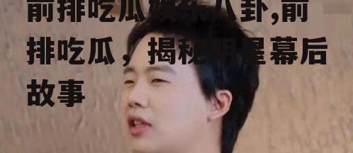 你知道吗?最近娱乐圈可是热闹非凡,前排吃瓜群众们纷纷拿出小板凳,准备大快朵颐一番。今天,就让我带你一起走进这个五彩斑斓的八卦世界,看看都有哪些新鲜事儿等着我们呢!